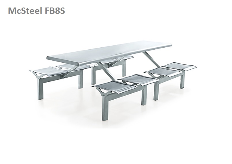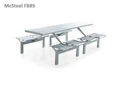 Környezeti hatásoknak remekül ellenálló acél és rozsdamentes acél gyorsétkezdei padok.