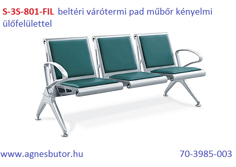 Várótermi padok műbőr vagy poliuretán kényelmi felületekkel.