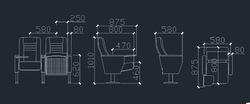 · Back-rest is tailor-cut, made of flame retardant Polyurethan with 40kg/cubic meter density, and fxed to 15mm thick beech-wood . Covered by 100% polyesther flame retardant fabric that has 310gr/squaremeter density. Martindale 100.000 cycles. outer side of the back rest is made of 12mm thick beech-wood wooden-boards covered with antracit colour. No visible screws allowed.